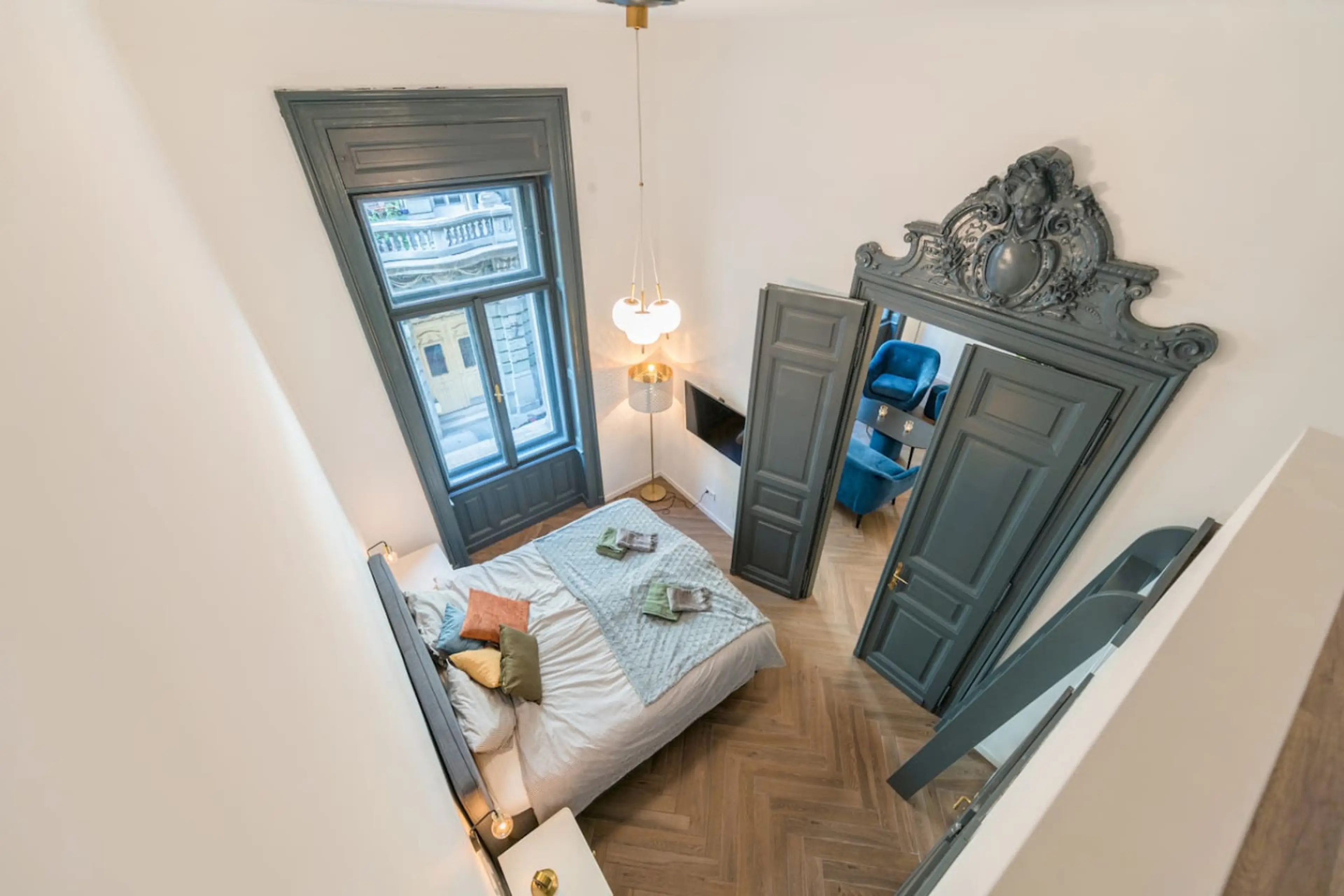 Luxurious design apartment located in the Palace District. Turn of the century classic architecture and interior meets the latest state of the art equipment, in a tasteful display of pleasant high end living. Enjoy your stay in Budapest to the fullest extent. Come home after a day out at town an...